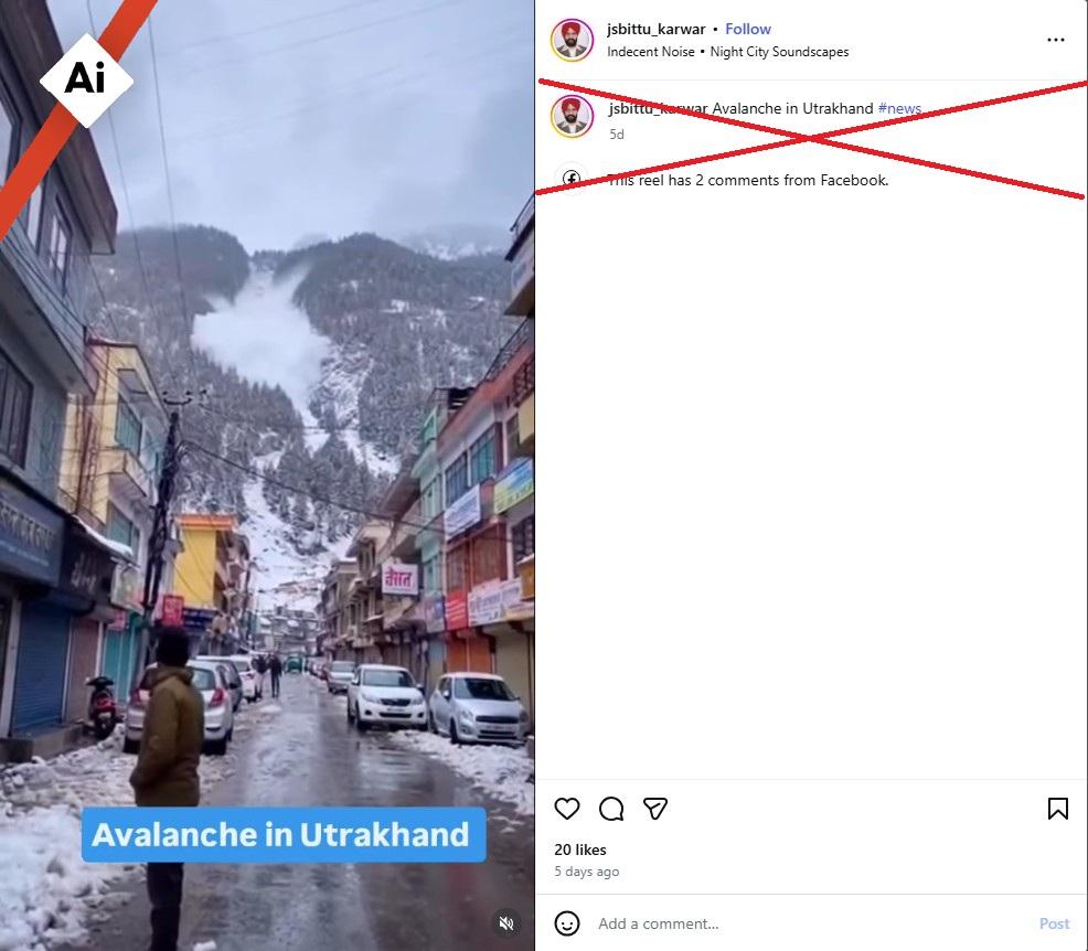 The video claiming to show an avalanche in Uttarakhand is AI-generated and does not depict a real incident. The clip was originally shared by an account that creates synthetic content using AI tools. It resurfaced after avalanche warnings in northern India, misleading viewers into believing it showed a real disaster. The viral video is not real footage of an avalanche in Uttarakhand. It was generated using artificial intelligence. The clip shows snow racing down a mountainside and crashing into people and vehicles along a narrow street.