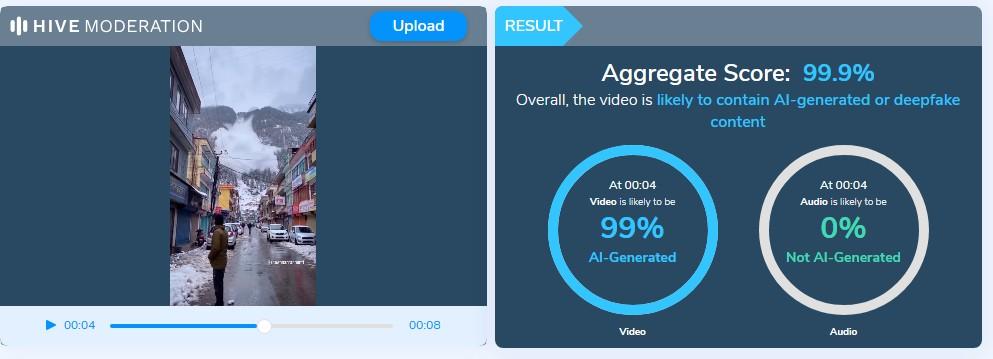 We analysed the footage using Hive Moderation’s AI detection tool. The result indicated that the video is “likely to contain AI-generated or deepfake content.”